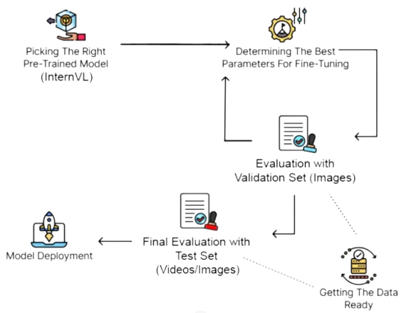 In our project, InternVL is the core engine for battlefield scene interpretation. We fine-tuned it on a curated military dataset to help the model specialize in detecting and understanding combat-related elements—like military vehicles, personnel, weapons, and formations. By feeding each frame of a video into InternVL, the model generates precise and context-sensitive captions. These captions are then compiled into structured reports, automating the task of analyzing combat footage and enabling quicker, data-driven decision-making in mission-critical environments.