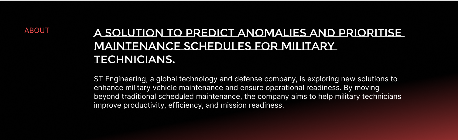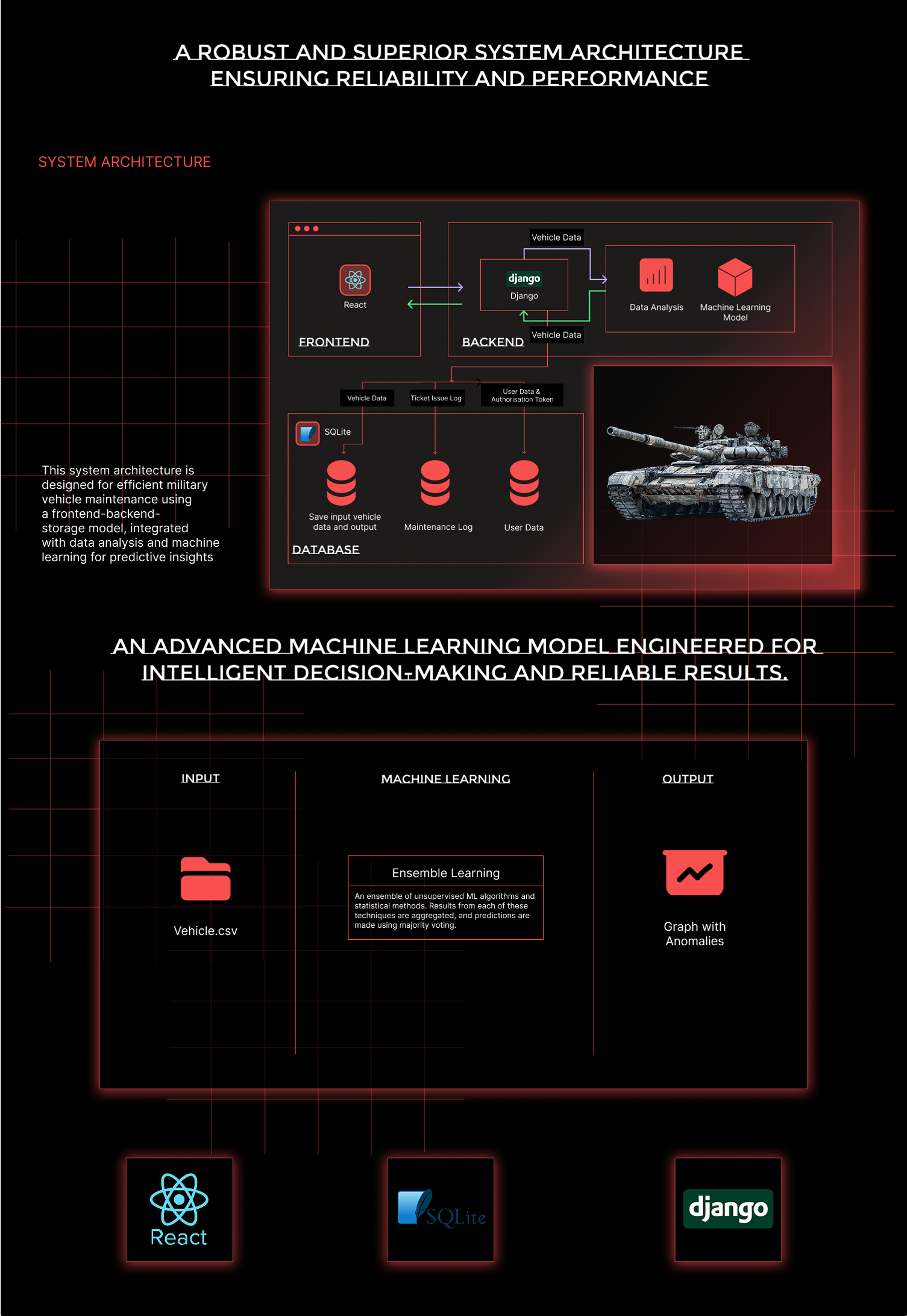 A revolutionary AI-driven predictive maintenance platform designed to detect anomalies, prevent failures, and enhance combat readiness. By analysing historical performance metrics, this system provides military personnel and technicians with smarter diagnostics, thereby improving safety and cost-effective fleet management.