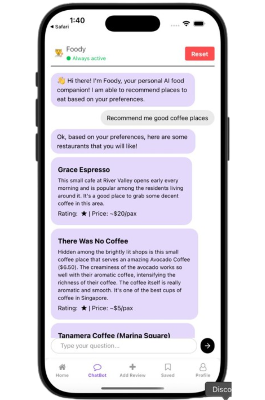 Foody is an AI Platform that’s built to provide foodies with hyper-personalised recommendations based on their personal preferences and the preferences of their community.
