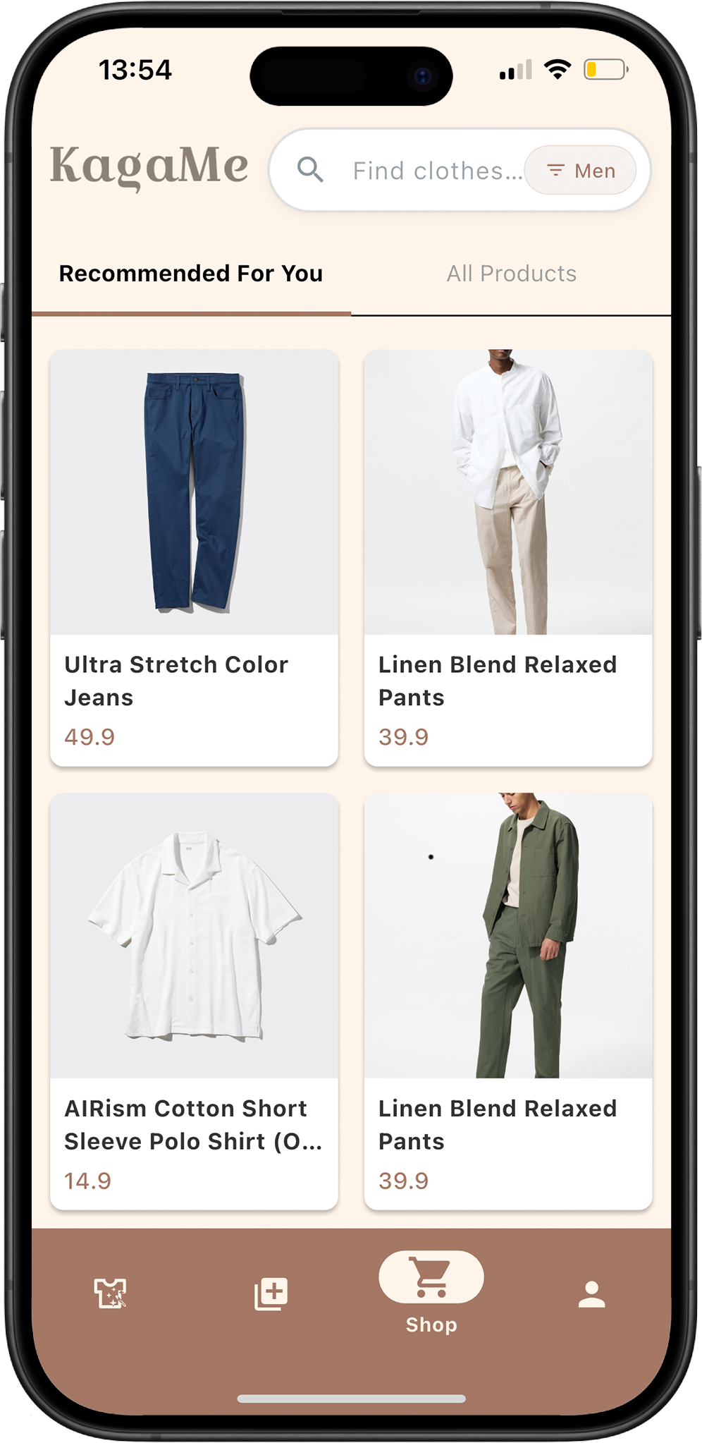 Discover what to shop as we recommend clothes that match your style. Unsure of how it looks? KagaMe lets you visualise how it looks with your clothes