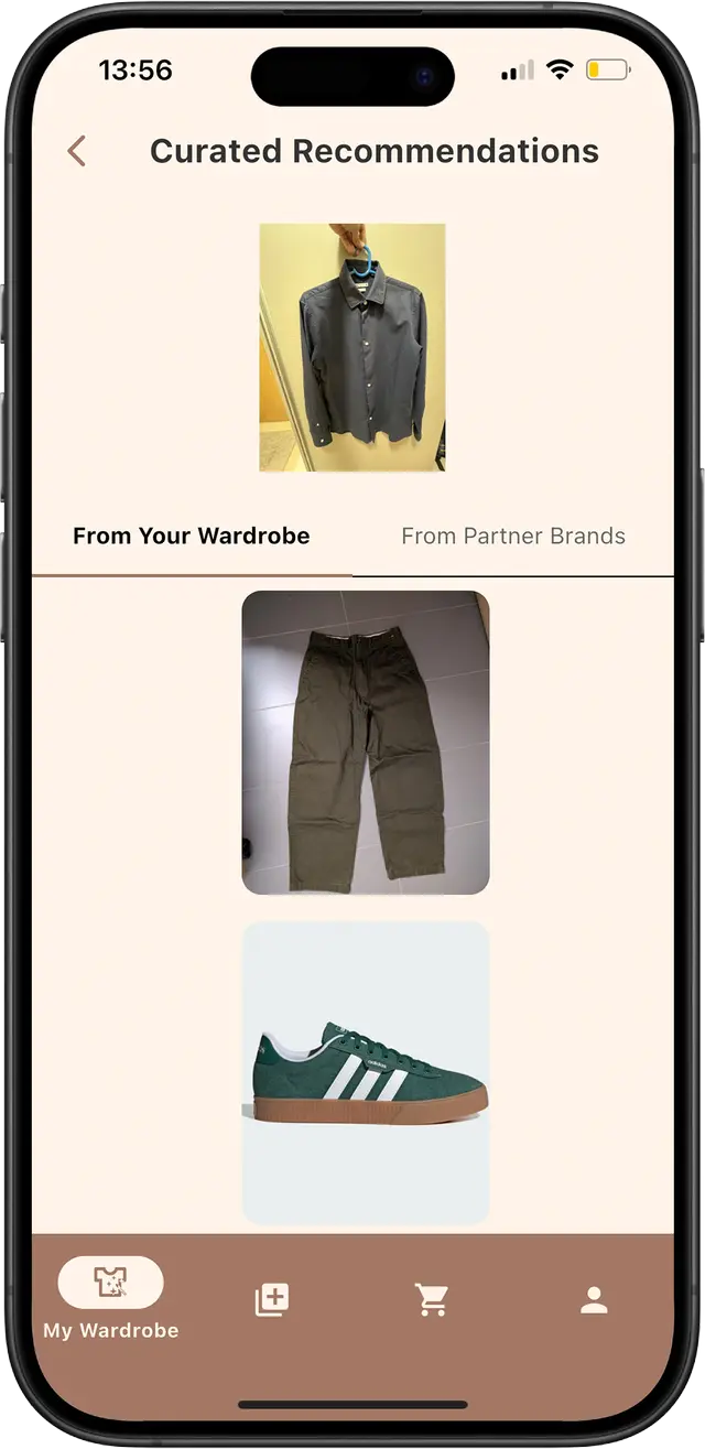 Get personlalised outfit recommendations based on your style and wardrobe. Outfits are made with your clothes and items from our partner brands