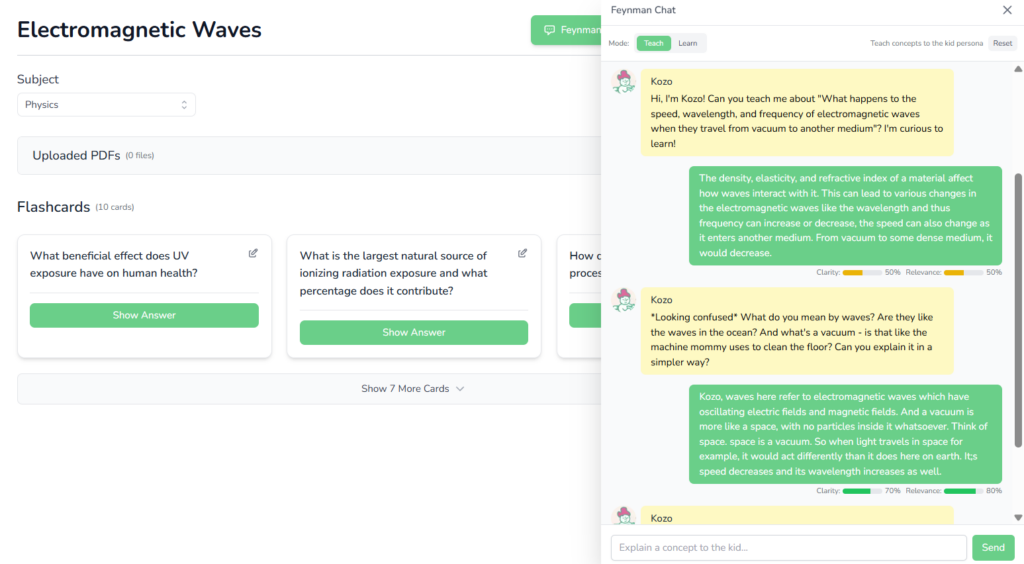 “The flashcard generation saves me so much time. The Feynman Bot is impressive!”