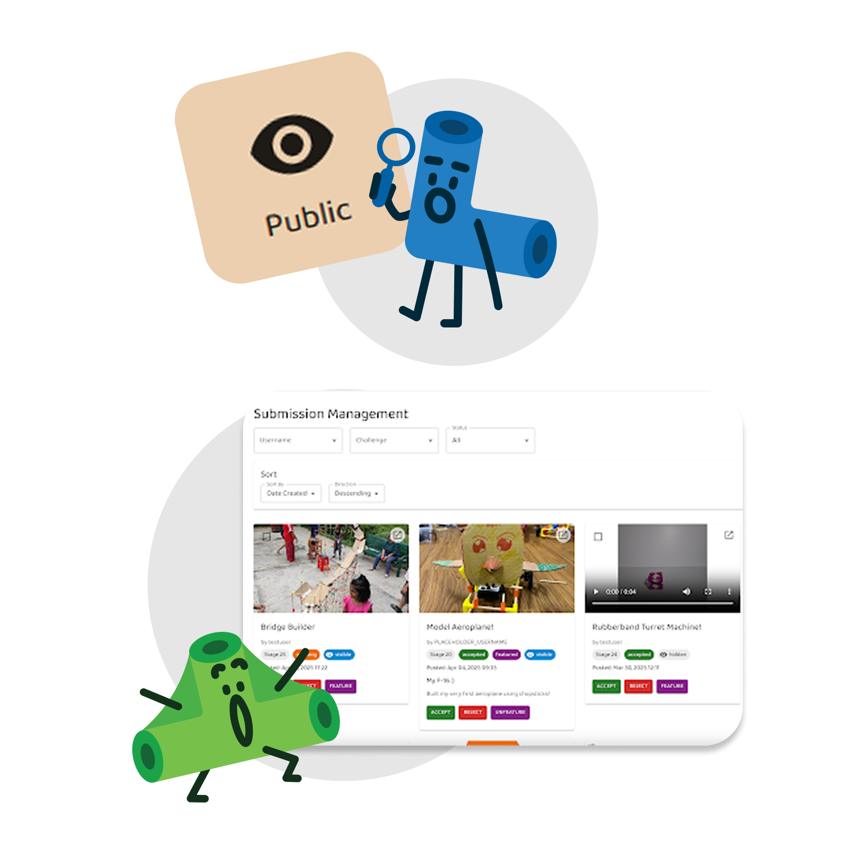First, kids must give clear permission to share their work. Then, before anything goes live, our Stick ‘Em admins carefully review each submission through our admin dashboard to screen for any safety concerns.