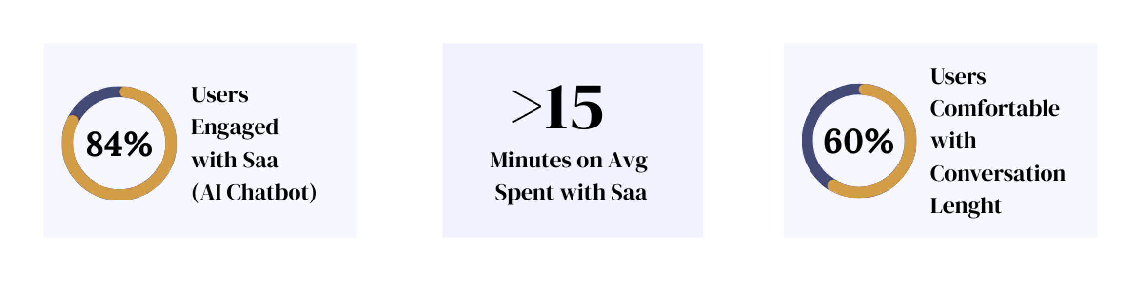 On average, users spent 15 minutes chatting with Saa, with 84% interaction rates.