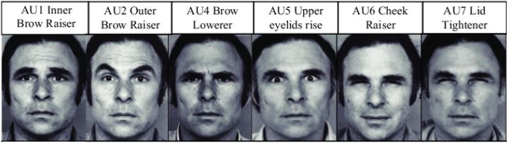 AUs are the movement of a facial muscle or muscle groups that make up an emotion.Â