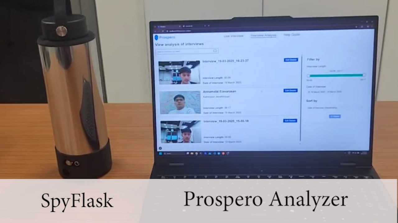 Prospero Analyser, our frontend, is a visualization tool to visualize recorded interviews from SpyFlask and analyses from MFE and LVA, empowering interviewers to move beyond raw data.