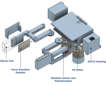 Reverse Double Four Bar gripper to reliably grip objects of up to 1.75kg, due to high torque offered by a DC motor.