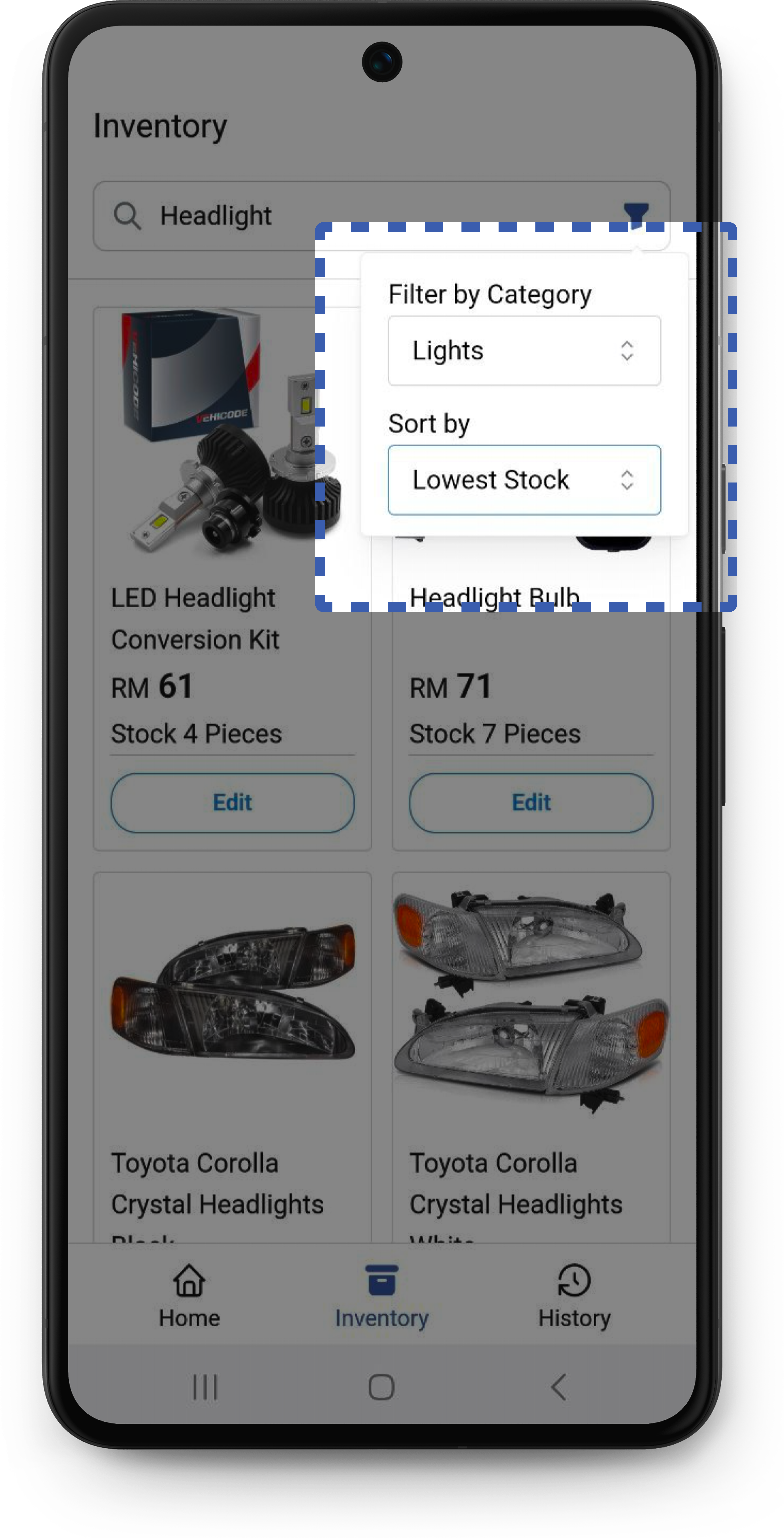 You can search, filter, and manage your entire stock in just a few taps. No spreadsheets or complicated software required.