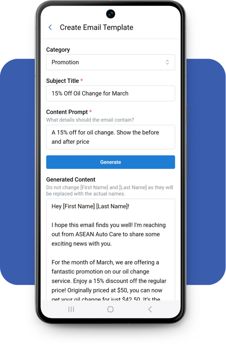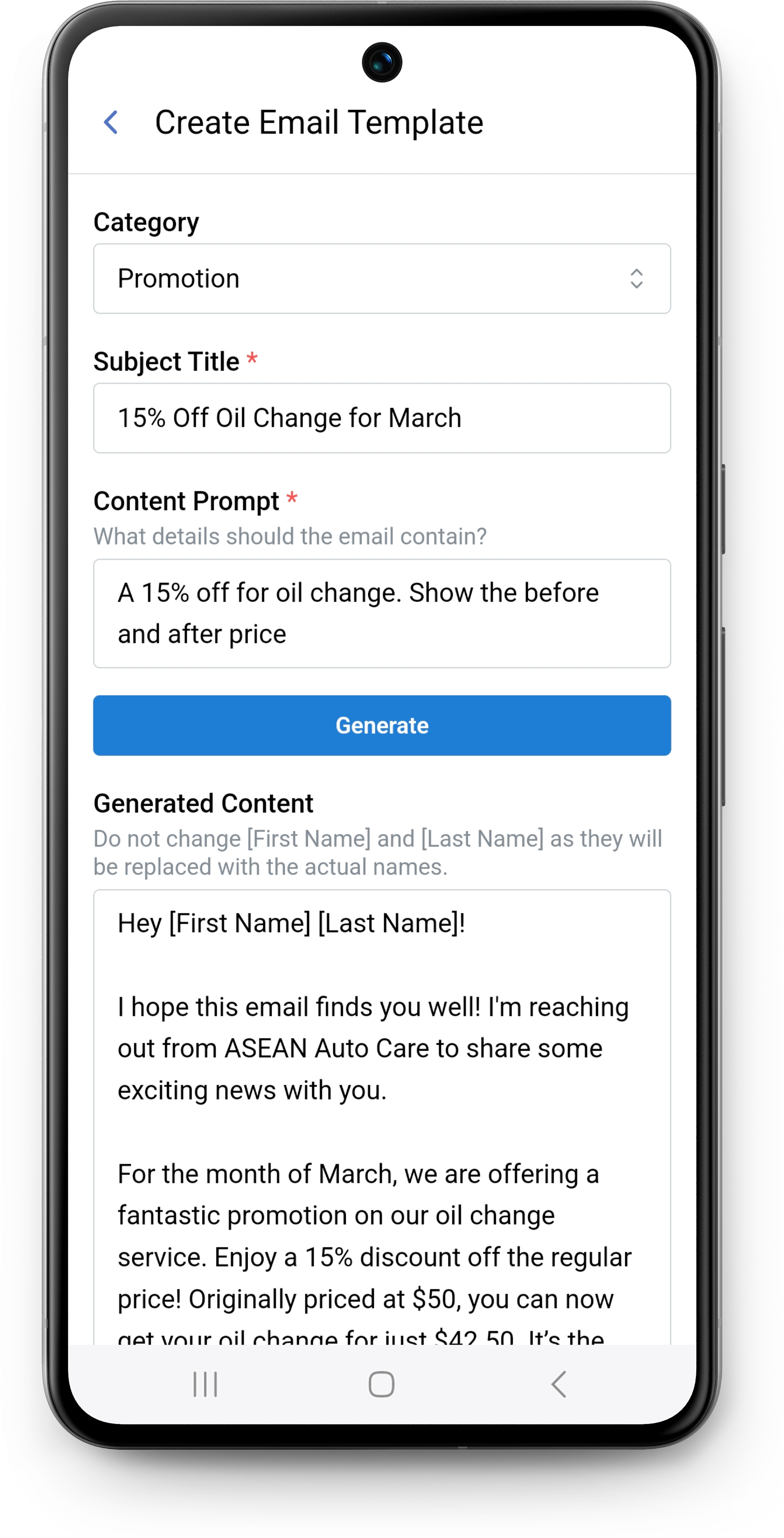 Create unique, tailored messages with the help of AI. Just enter a few details, and let the system craft the perfect promotion for your customers.