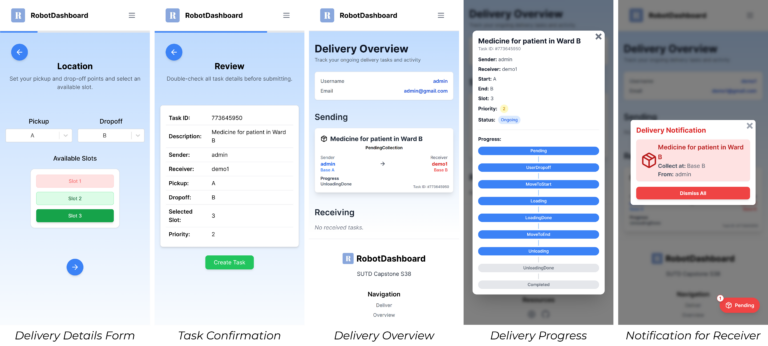 Live dashboard shows delivery progress and robot location.